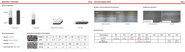 In this case study, multi-material samples of SS316L and SDSS were manufactured by MX-Fab, the possibility of multi-material was evaluated by mechanical property evaluation/microstructure analysis/bonding interface analysis and selecting the optimum heat treatment for securing ferrite contents within the range.