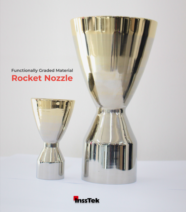 Using MX-Fab and PCM-Multi, which are fit for multi-material, InssTek applied the research-focused FGM to an actual Rocket Nozzle shape and confirmed its possibility.