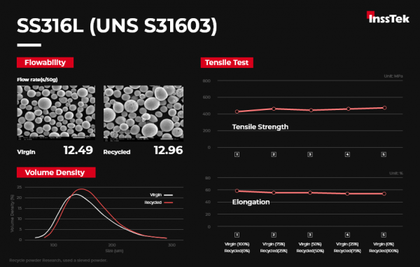 - As a result, there was no significant difference between recycled powder and virgin powder in various indicators. (Powder was recycled after sieving)