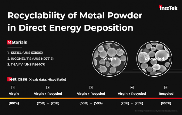 - More than 95% of powder after DED process can be used as a recycled powder.