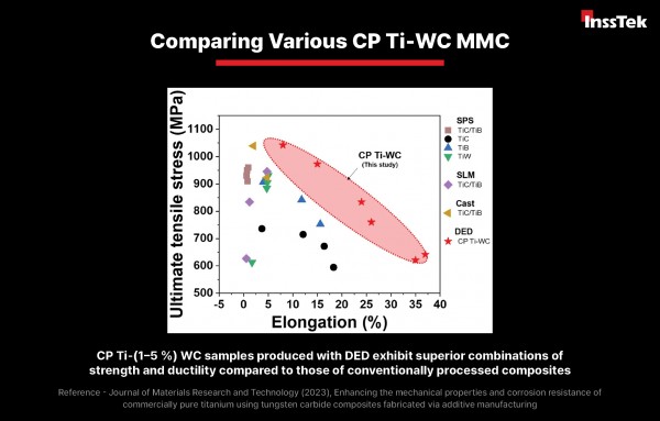 • This study investigates the fabrication of CP Ti-WC MMC using InssTek's Technology and explores the effect of the WC content on the microstructure, mechanical properties, and corrosion resistance.