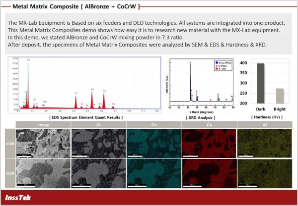 After deposit, the specimens of Metal Matrix Composites were analyzed by SEM & EDS & Hardness & XRD.