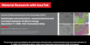 • The present study investigates the anisotropic microstructure, nanomechanical, and corrosion behavior of Ti–13Nb–13Zr biomedical alloys, which were fabricated using InssTek's DED Technology.