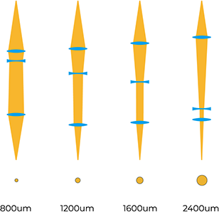 | Beam Size (um) | 800 | 1200 | 1600 | 2400 |