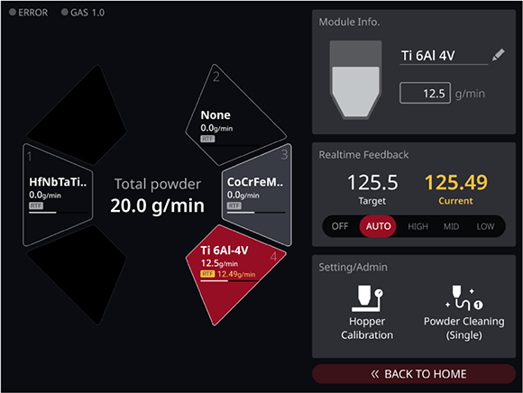 - Patented powder feeding method & Unique feedback system